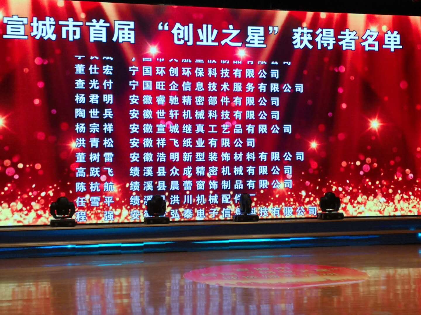 熱烈恭賀,寧國環(huán)創(chuàng)環(huán)??萍加邢薰痉ㄈ硕撕辏恍鞘写蟊妱?chuàng)業(yè)工作領(lǐng)導(dǎo)小組評選為宣城市首屆創(chuàng)業(yè)之星。承辦單位:宣城市委宣傳部、市人社局、市發(fā)改委、市經(jīng)信委、市科技局、市財政局、市工商質(zhì)監(jiān)局、市婦聯(lián)、市團(tuán)市委參加頒獎儀式。